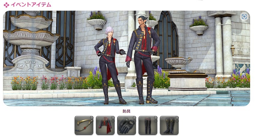 イベントに参加してクエストをクリアするとセネシャルプリンス装備一式が入手可能です